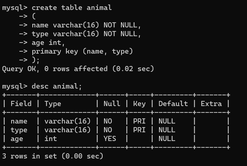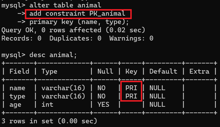 (= 동시에 여러 개의 칼럼을 기본키로 지정할 수도 있음)