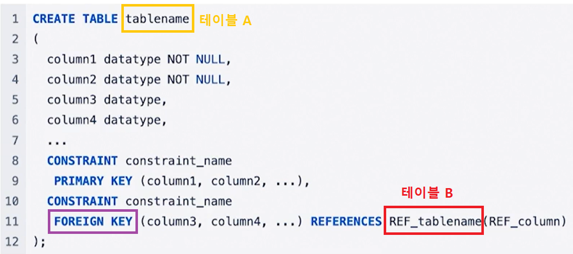 단, 참조되는 테이블의 항목은 그 테이블의 기본키(혹은 단일값)