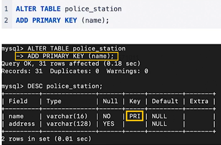 (예제 2) police_station과 crime_status 테이블 사이에 관계(Foriegn key)를 설정하기 (with AWS RDS)