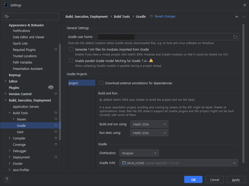 배포 및 협업 시에는 Gradle이 통일된 개발 환경을 제공할 수 있으나 Gradle을 통하면 속도가 느리므로, 개인 공부 등 상황에 따라 자바로 직접 실행하도록 변경하면 실행 속도를 향상시킬 수 있다.