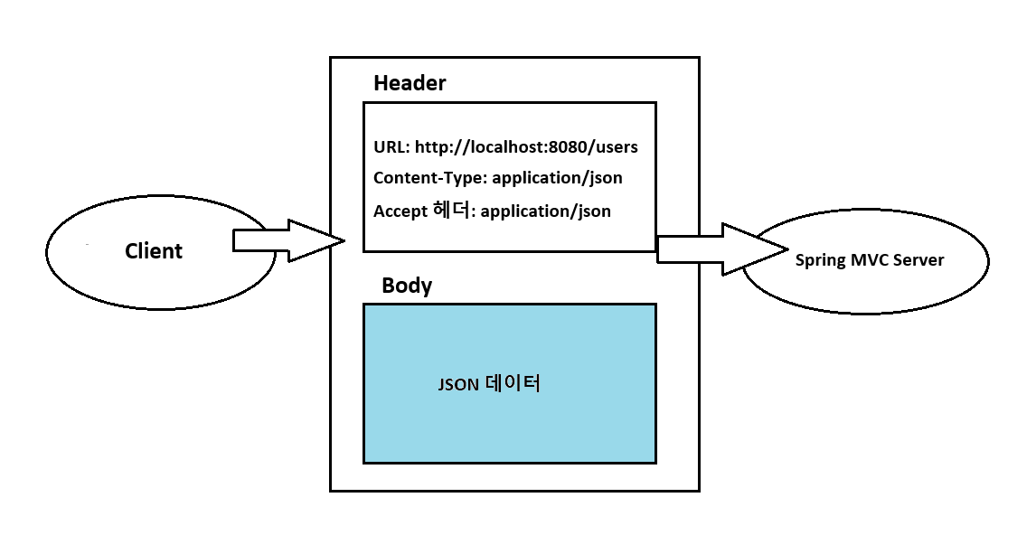 HTTP Body에는 JSON 데이터가 담겨져 있고, Content-Type과 Accept 헤더는 application/json 정보가 담겨져있다.