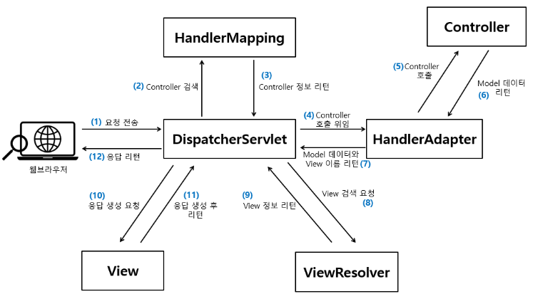 그리고 나서 Controller 실행 권한을 HandlerAdapter에게 위임한다.