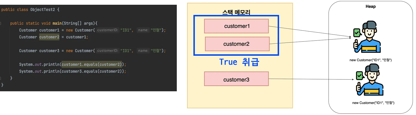 System.out.println(a.equals(b)); // true (๊ฐ ๋น๊ต)