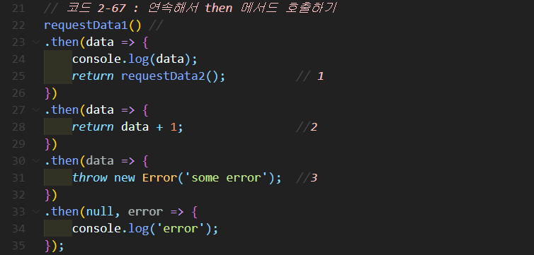 프로미스를 중첩해서 사용하면 콜백 패턴처럼 코드가 복잡해지므로 사용을 권하지 않는다.