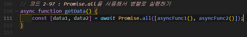 Promise.all 은 여러 개의 프로미스를 병렬로 처리할때 사용하는 함수이다.