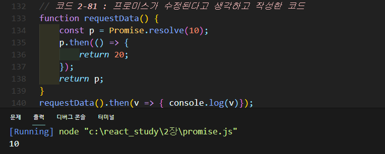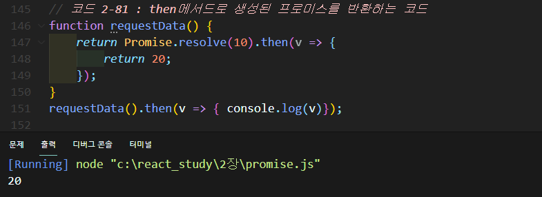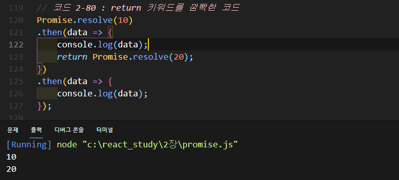 return 키워드를 사용하지 않으면 프로미스 객체의 데이터는 undefined가 된다.