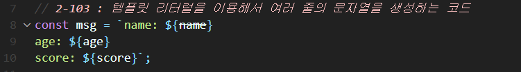 탬플릿 리터럴은 백틱(``)을 이용한다. 표현식을 사용할때는 ${expression}형식으로 입력한다.