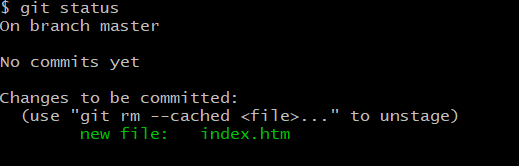 new file 메세지가 뜨고 이것은 스테이지 영역에 파일을 정상적으로 등록했다는 의미이다.