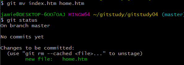 이름을 변경한다는 의미는 기존 파일을 삭제하고 새파일을 다시 스테이지 영역에 등록하는 과정과 유사하다.