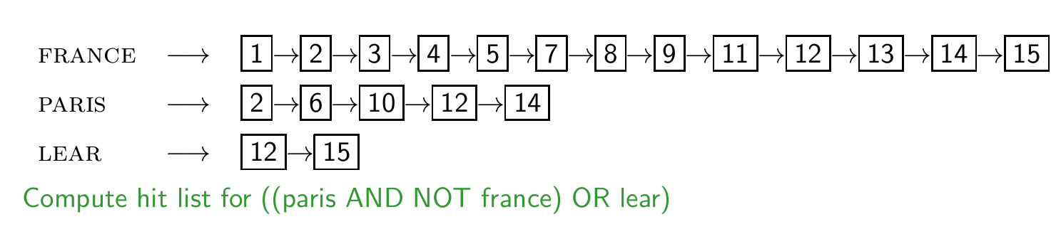 ※ postings list가 정렬된 경우에만 사용 가능하다.