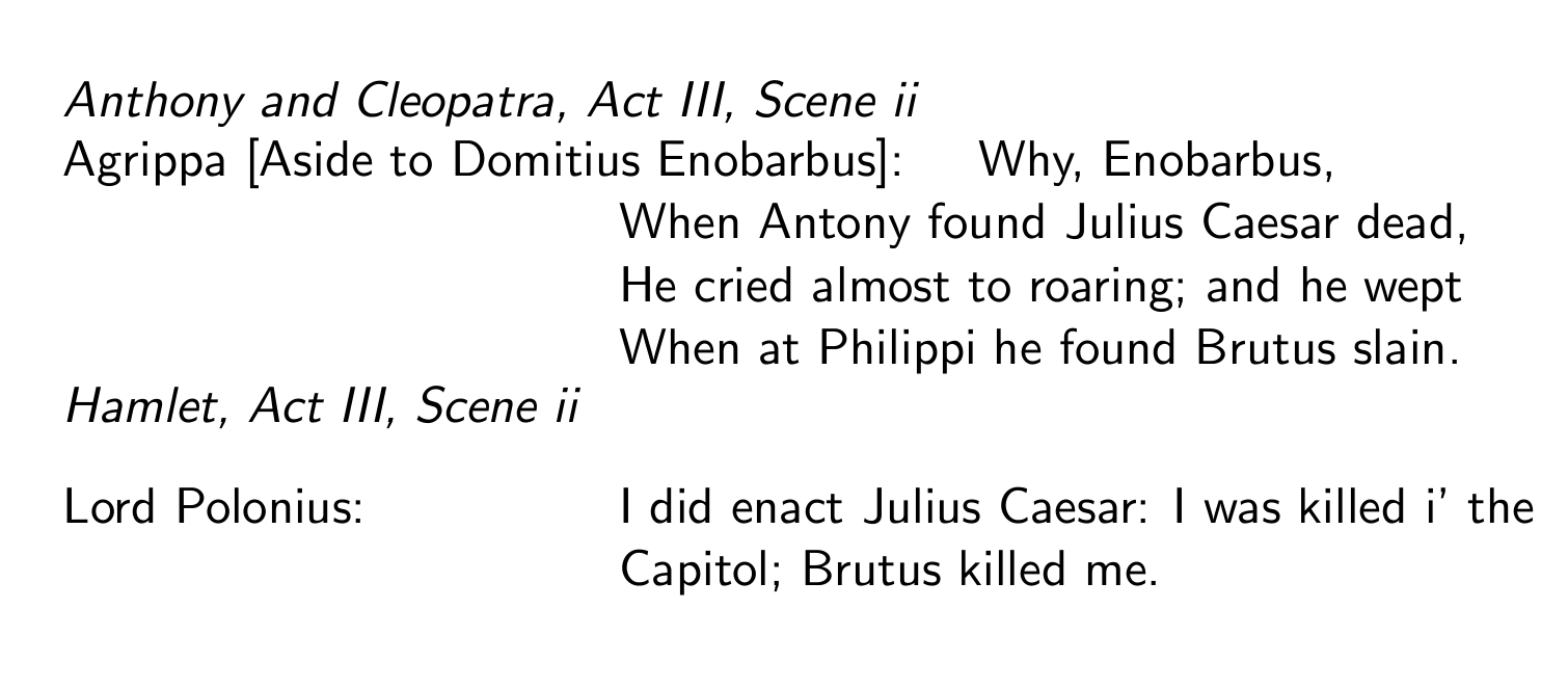 위 행렬에서 Anthony and Cleopatra, Hamlet이 답을 가지고 있다는 것을 알았으니 사용자에게 보여줄 응답은 아래와 같다.