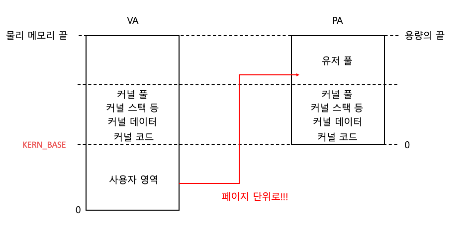 왜냐? 1대1 맵핑이기 때문에 우리가 KERN_BASE + PA를 통해서 KVA를 얻을 때 바로 사용할 수 있도록!