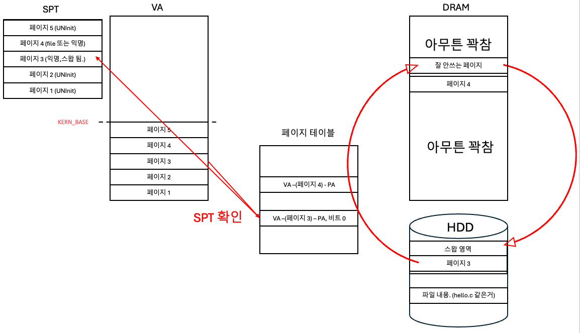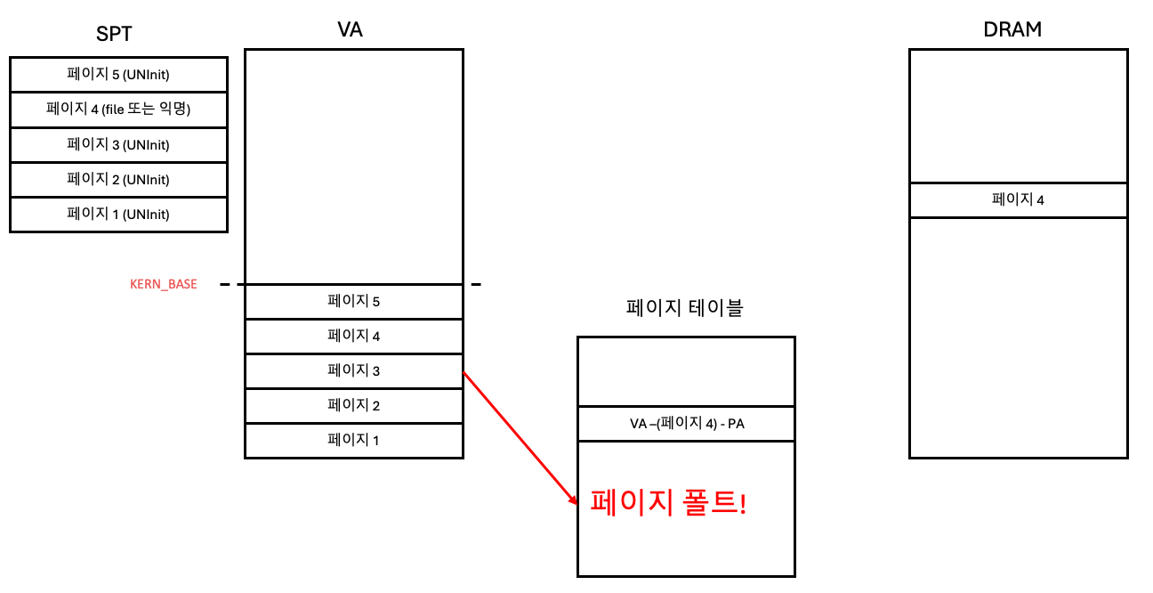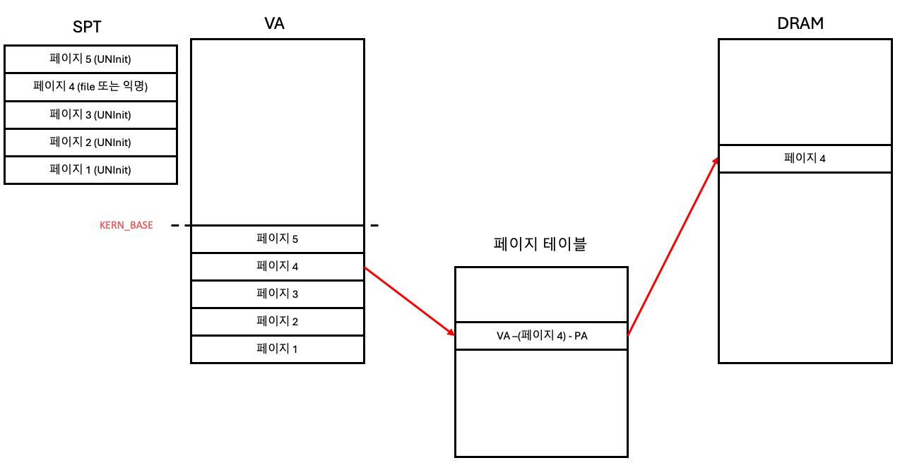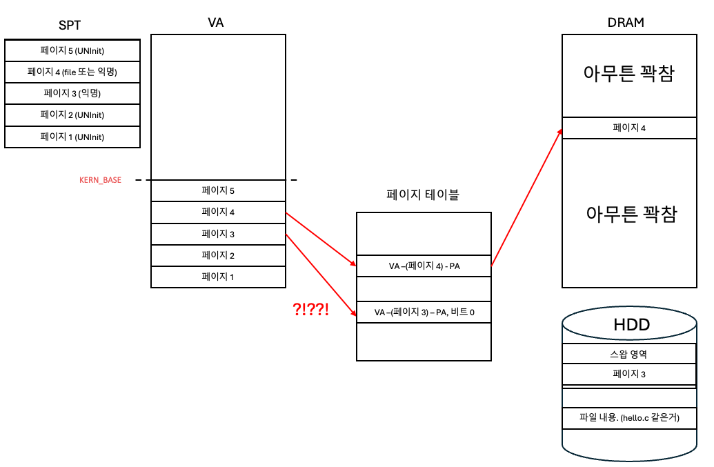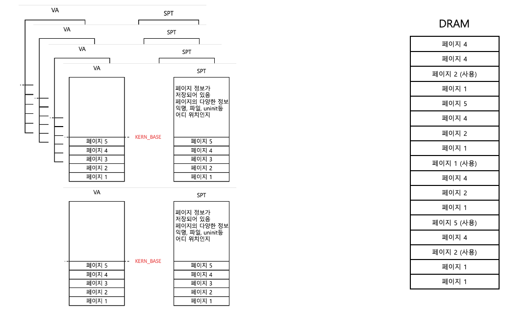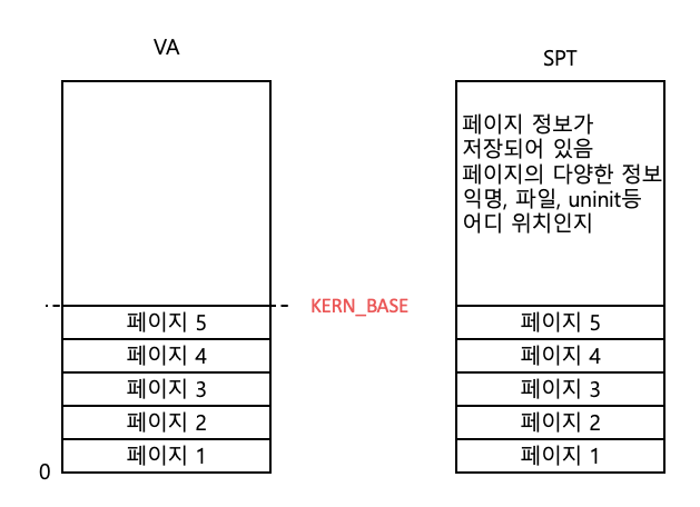 물리 메모리 접근 전, 즉 진짜 사용하기 전에는 SPT에 페이지에 대한 정보만 저장해둔다!!