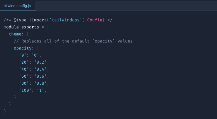 이건 또 적용이 되는 걸 보니 색상 변수를 정의해준 부분에 문제가 있을까 싶어 tailwind.config.js 파일 관련하여 서치해보다가 Tailwind CSS 문서의 Theme Configuration 파트에서 원인을 찾았다.