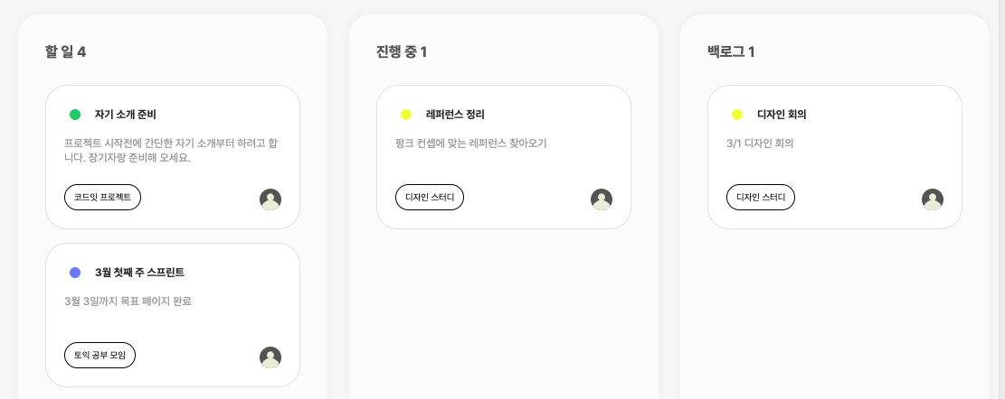 오늘도 즐겁게 프로젝트 중. 칸반보드를 만들고 있다.