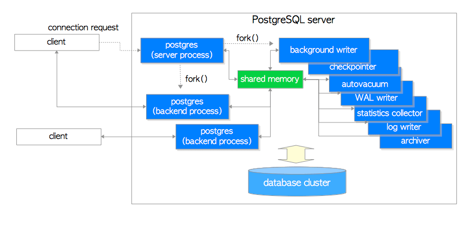 PostgreSQL์ ํด๋ผ์ด์ธํธ / ์๋ฒ ๋ชจ๋ธ์ ์ฌ์ฉํ๋ค.