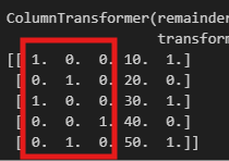 [1, 0][0, 1]ColumnTransformer๋ฅผ ์ฌ์ฉํ๋ฉด ์ด๋ฅผ ํ ๋ฒ์ ์ฒ๋ฆฌํ ์ ์๋ค.import pandas as pd