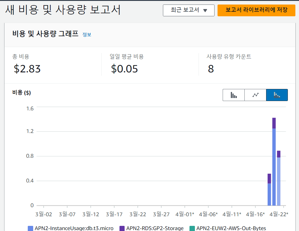 며칠 간 잠깐 잊고 있다가 문득 생각나서 AWS 결제 페이지를 확인해보니 과금이 되고 있었다.