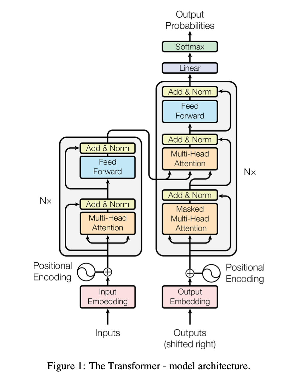 : 인코더 스택의 출력에 대한 multi-head attention, multi-head attention, feed forward로 구성, encoder처럼 각 sub layer는 모두 add & LayerNormalization 진행