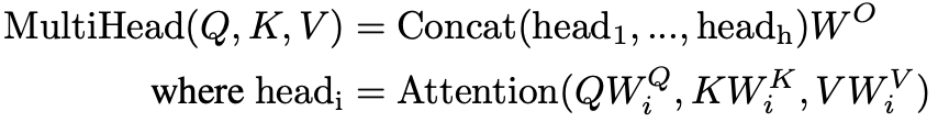 - Attention을 한 번 수행하는 것이 아닌, 병렬적으로 여러번 수행