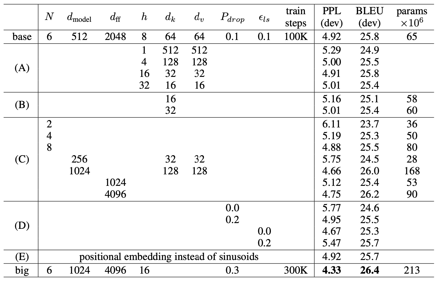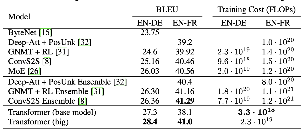 - 데이터: standard WMT English-German dataset (4.5M)과 Larger WMT 2014 English-French dataset (36M)