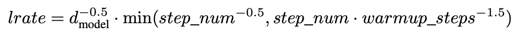 - 처음 warmup_step에서는 선형적으로 증가하다가, 어느정도 지나면 감소시키는 방법