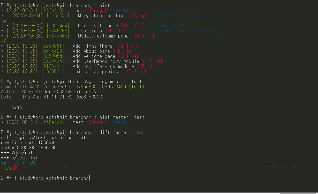 master와 (내가 commit한 것) 사이에 있는 commit들만 확인 가능