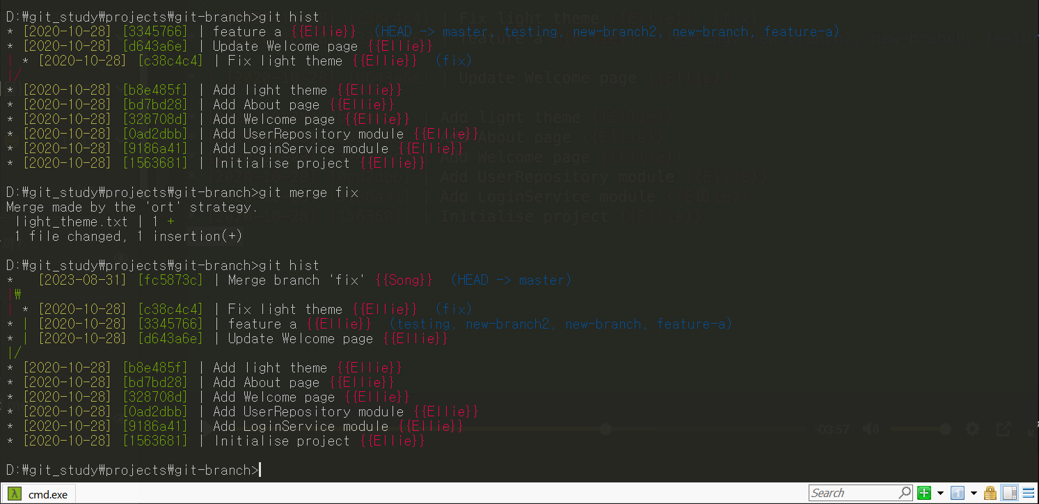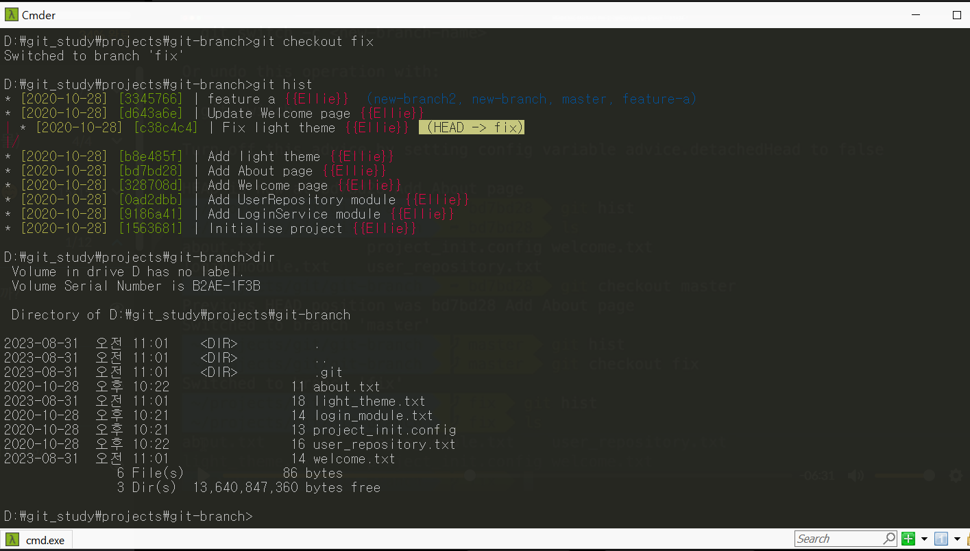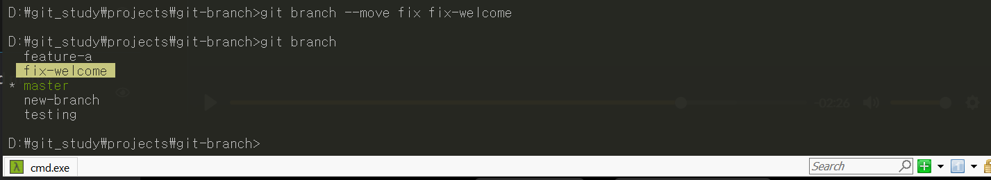 git branch --move (기존 이름) (변경할 이름) ex) git branch --move fix fix-welcome