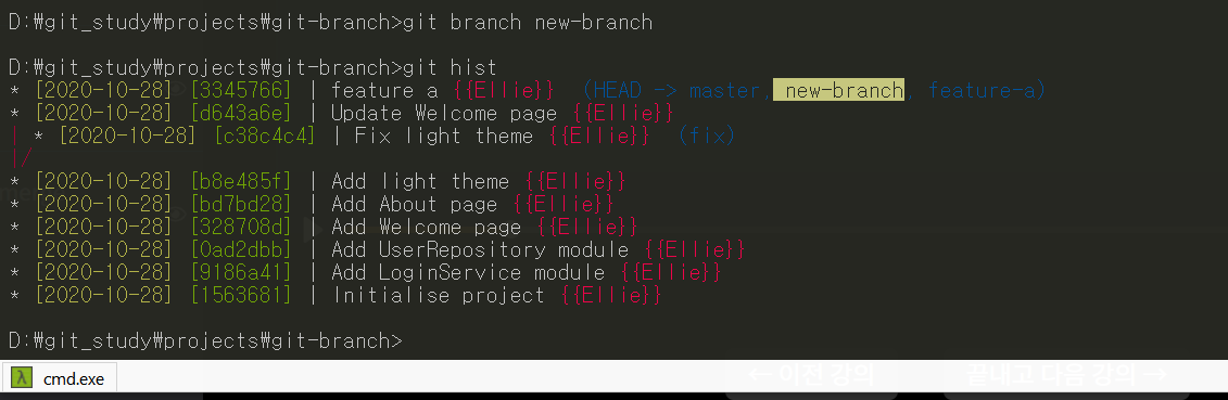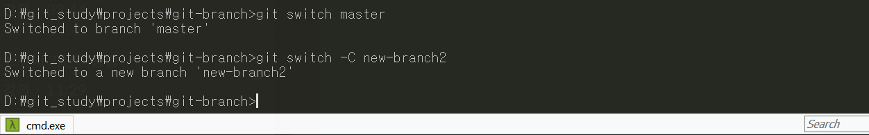 새로운 branch를 만들고 바로 그 branch로 이동하기