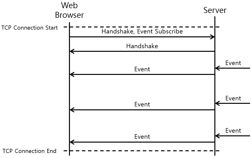 - 한 번의 핸드셰이크를 통해 연결을 수립한 후, 연결이 유지되는 동안 양방향 통신을 가능하게함