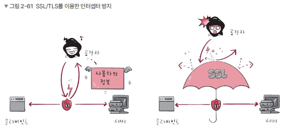 클라이언트와 서버가 통신을 할 때 SSL/TLS를 통해 제3자 메시지를 도청하거나 변조하지 못하도록함 (데이터를 암호화)