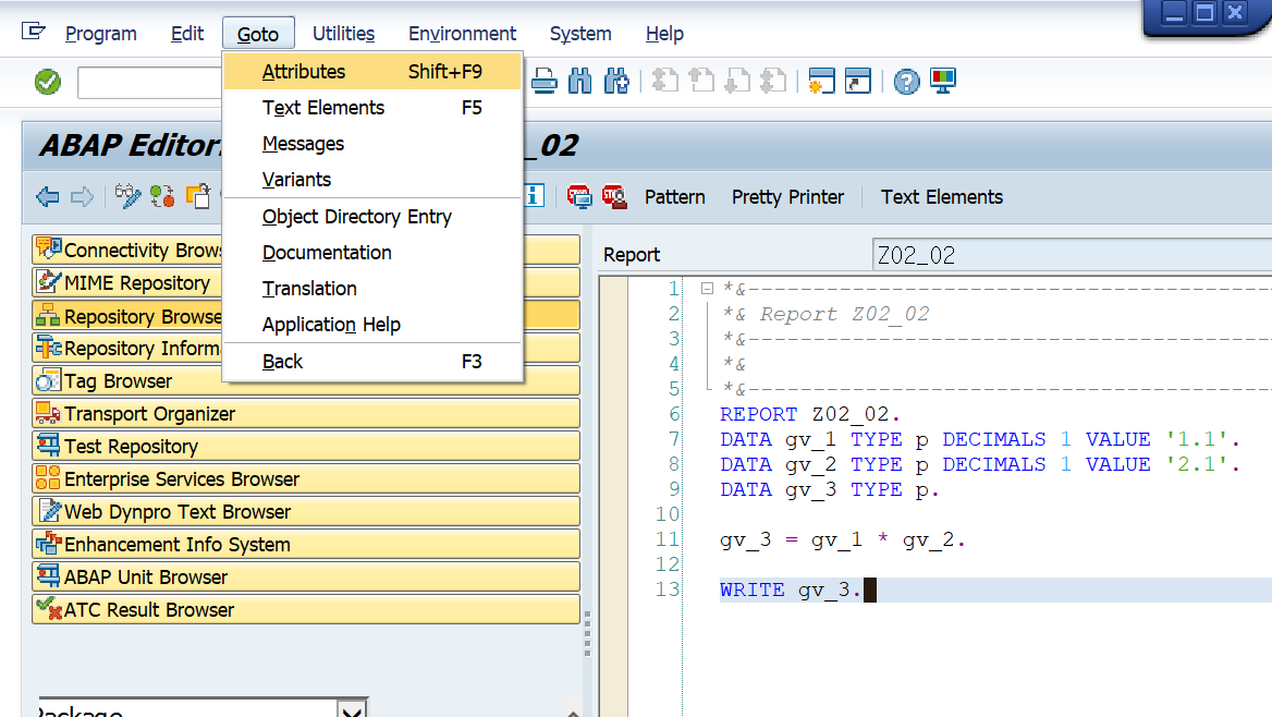 DATA gv_2 TYPE p DECIMALS 1 VALUE '2.1'.