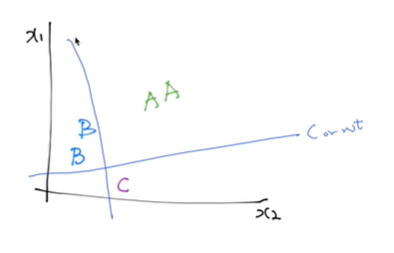 이런식으로 하나하나(예시: C인지 아닌지) 선을 그으면 됨.