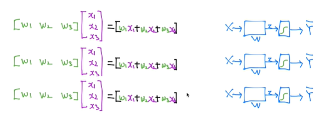 그럼 식이 이렇게 되는데 이걸 하나하나 계산하면 복잡하니까 합쳐서 행렬 벡터로 한번에 계산한다.