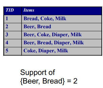 : I의 모든 items가 포함되어 있는 baskets의 수💡 Support