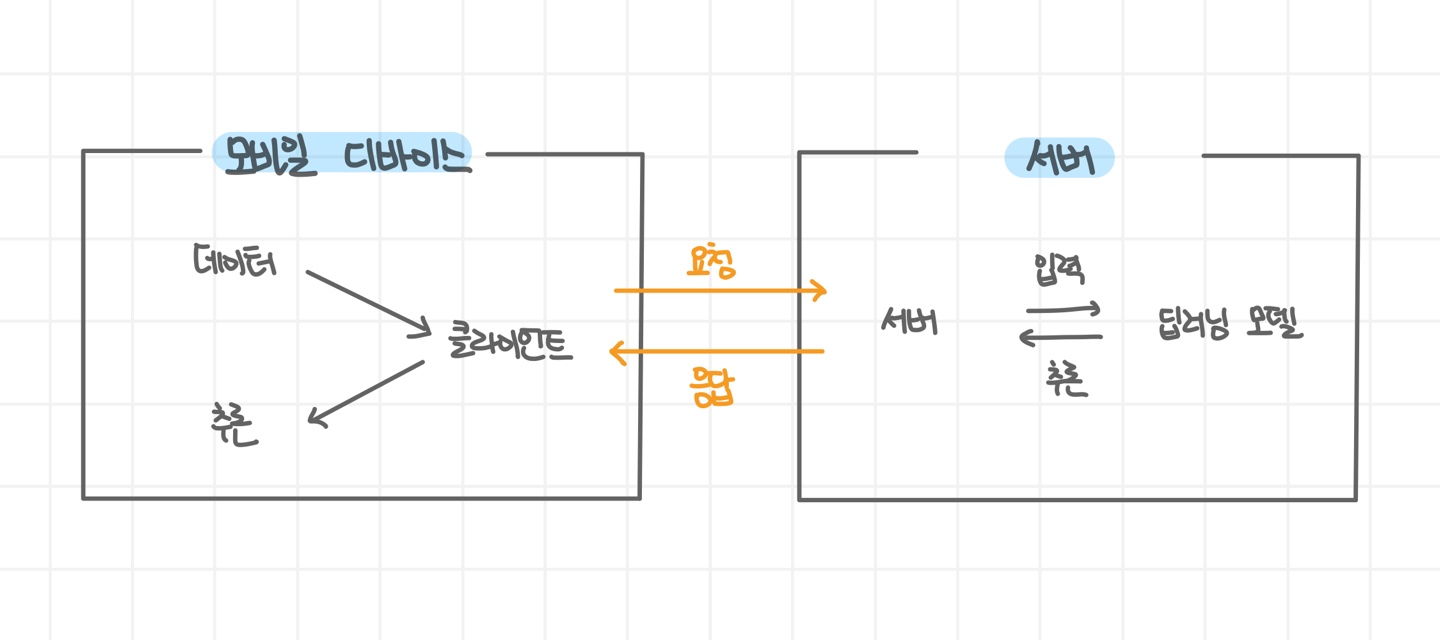 👉 서버 기반 아키텍처 사용 : 딥러닝 추론 결과를 안드로이드 앱에서 이용하기 위해 서버에 데이터를 보내고 추론 결과를 받아서 활용