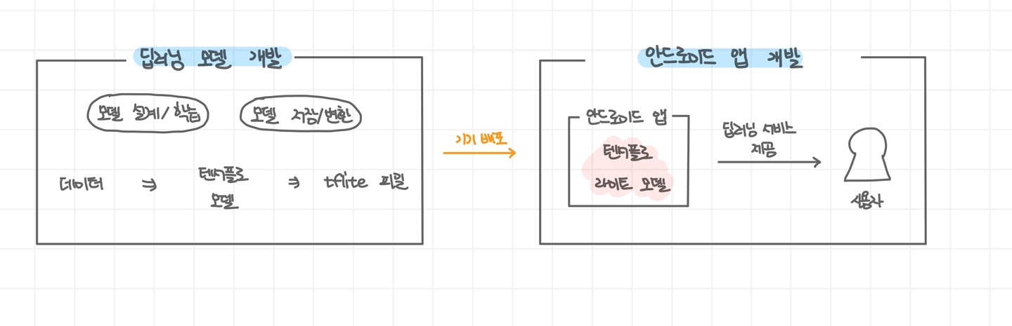 - ex) 안드로이드 앱의 UI 개발과 데이터 생성 로직 개발은 딥러닝 모델 개발 프로세스와 병행 가능