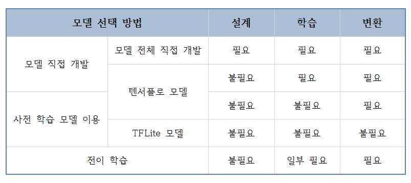 - 모델은 텐서플로를 이용하여 직접 개발할 수도 있고, 이미 개발된 모델을 사용할 수도 있음