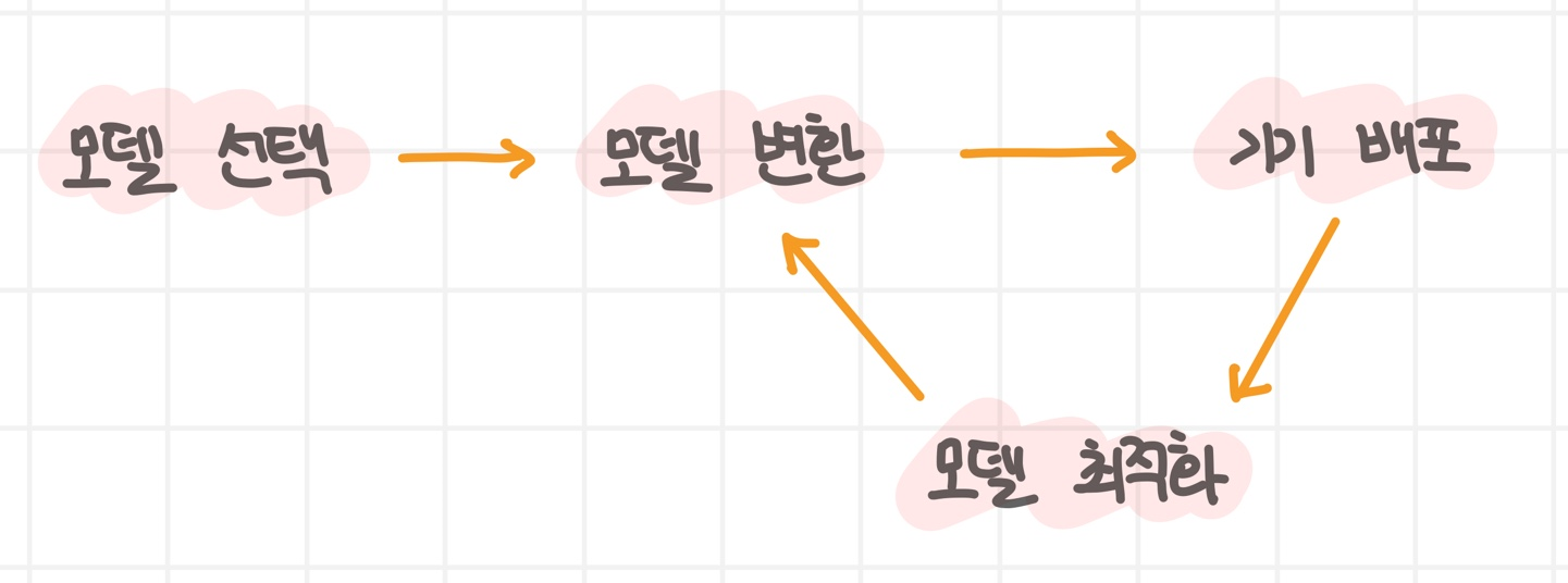 모델 선택 → 모델 변환 → 기기 배포 → 모델 최적화