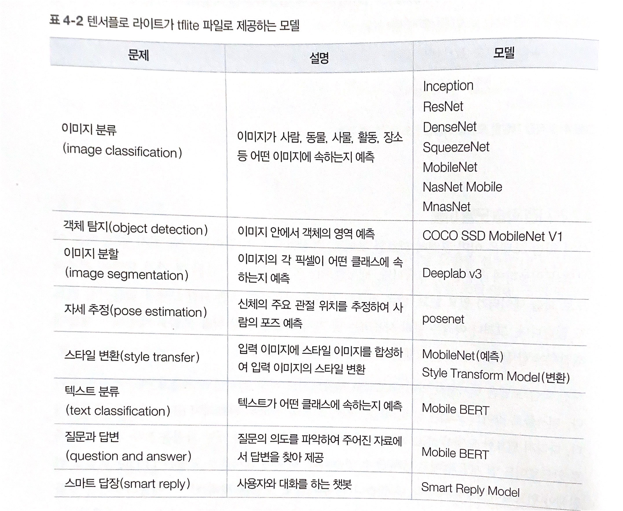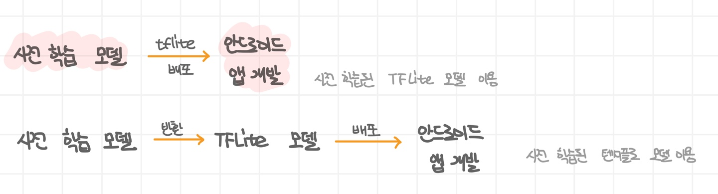 - 텐서플로 모델은 TFLite 모델로 변환해야 안드로이드에서 사용할 수 있음