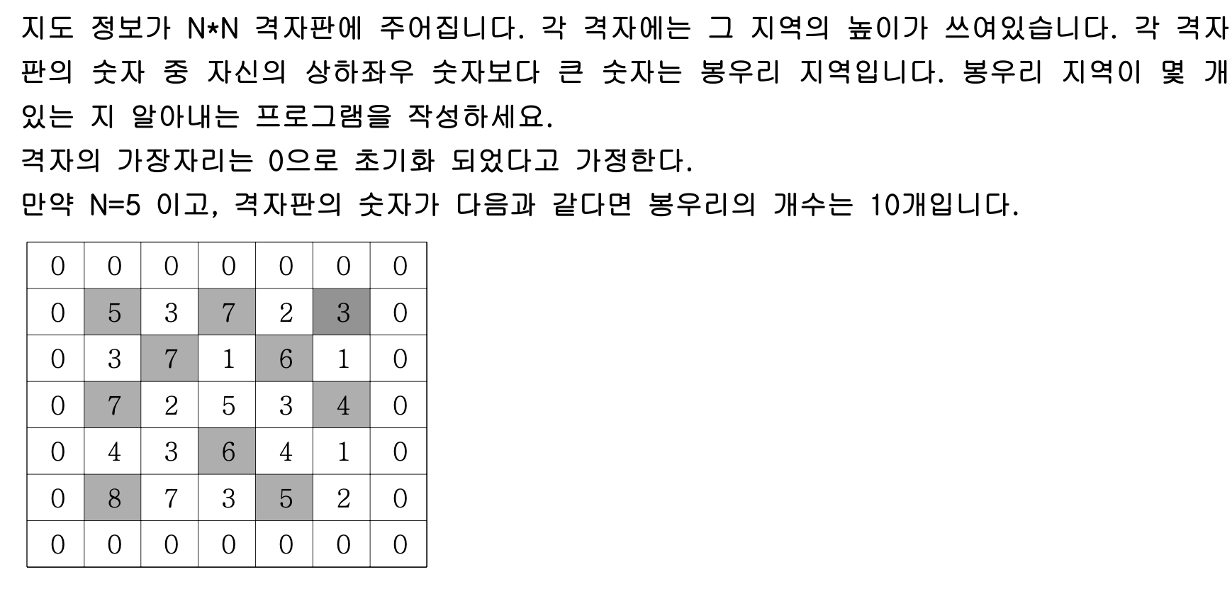 let count = 0; // 봉우리의 갯수 카운팅