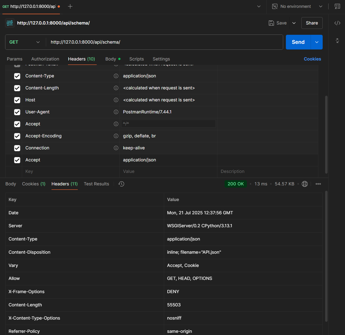 그렇다. SERVE_INCLUDE_SCHEMA를 키게 되면, 스키마 문서에 스키마 정보를 볼 수 있는 엔드포인트(여기에서는 /api/schema/)가 포함된다.