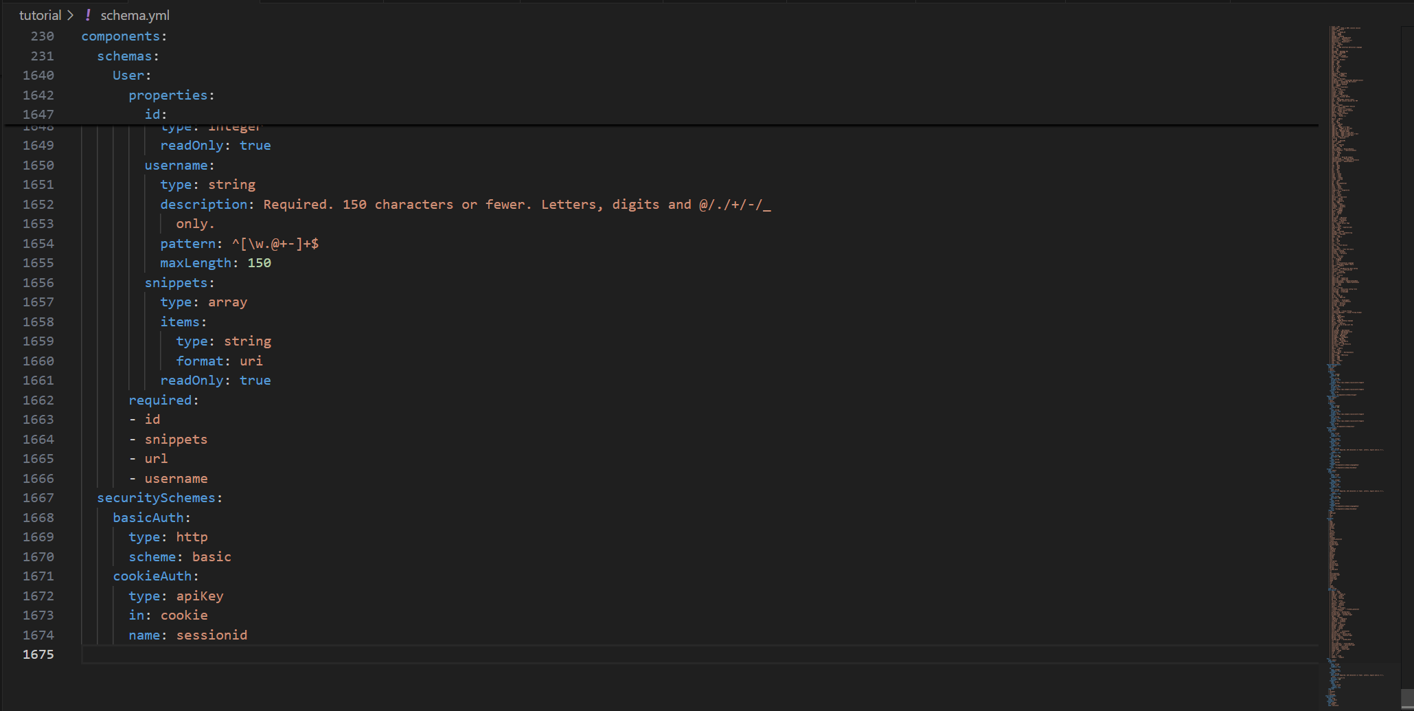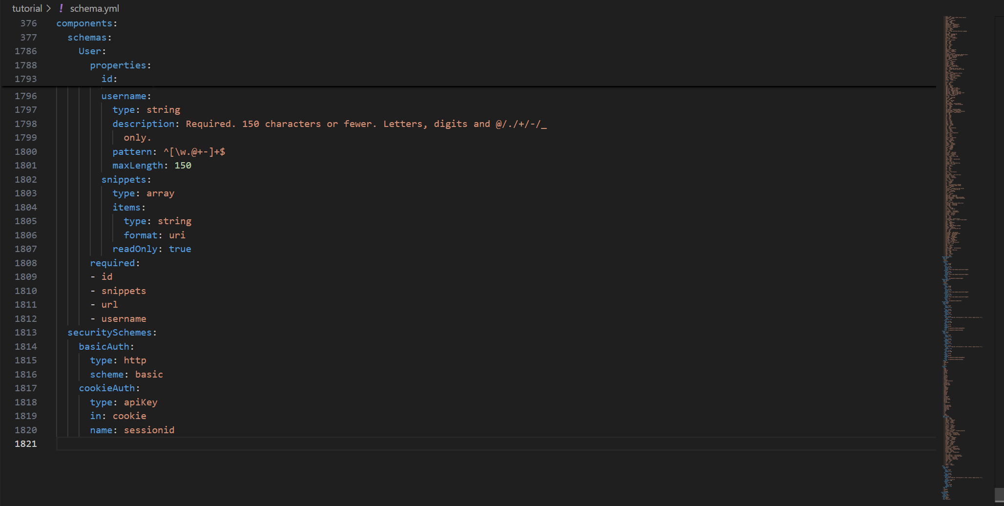 여기에서 --file schema.yml 없이 실행하면 스키마 문서의 내용이 터미널에 출력된다.