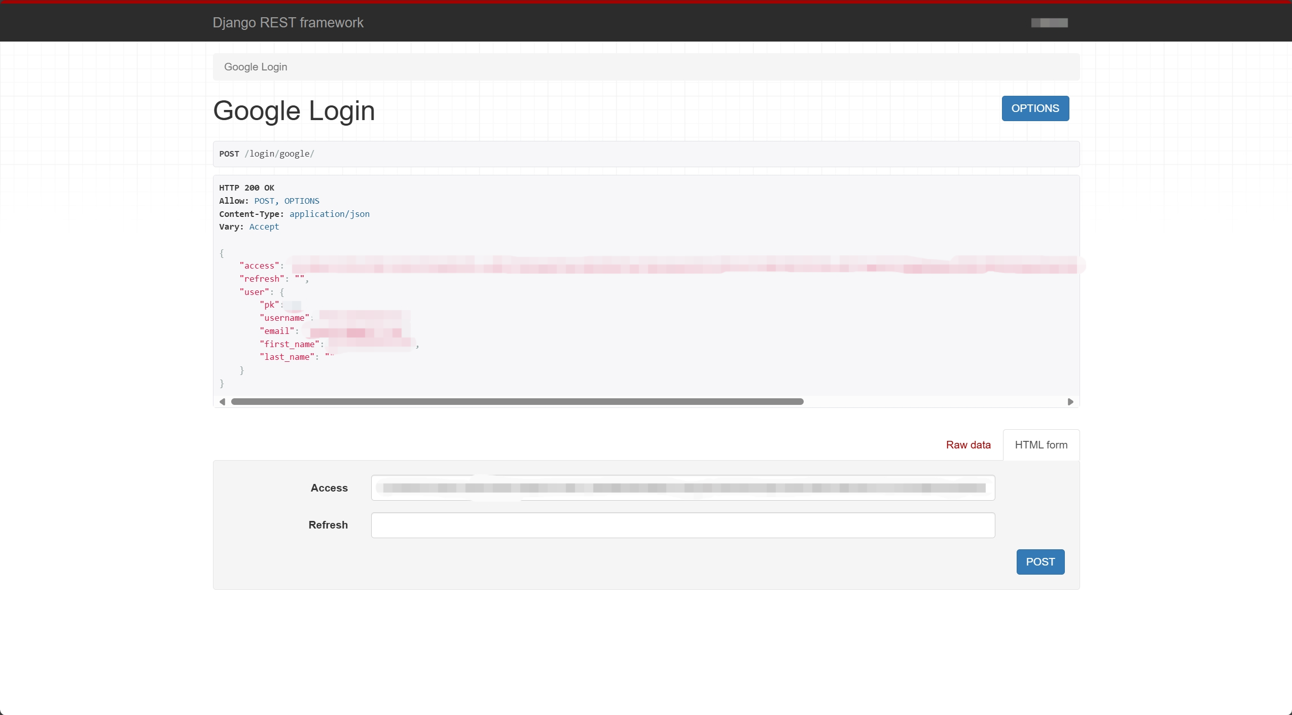 이렇게 하여 DRF를 쓰는 백엔드 입장에서 구글 로그인을 하는 실습을 해 보았다.