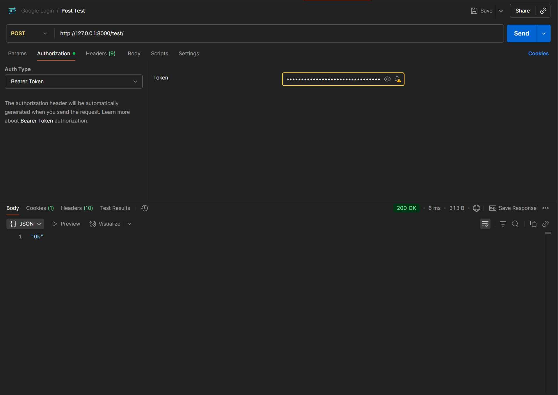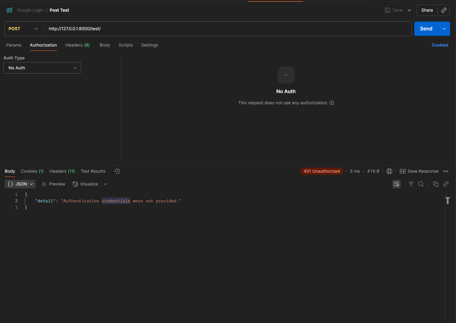 목표는 간단하다. 실제로 내 구글 계정을 가지고 소셜 로그인을 해보는 것이다. 구글 로그인을 한 후, 인증 및 인가가 잘 동작하는지 테스트용 엔드포인트에 POST 요청을 날려볼 것이다.