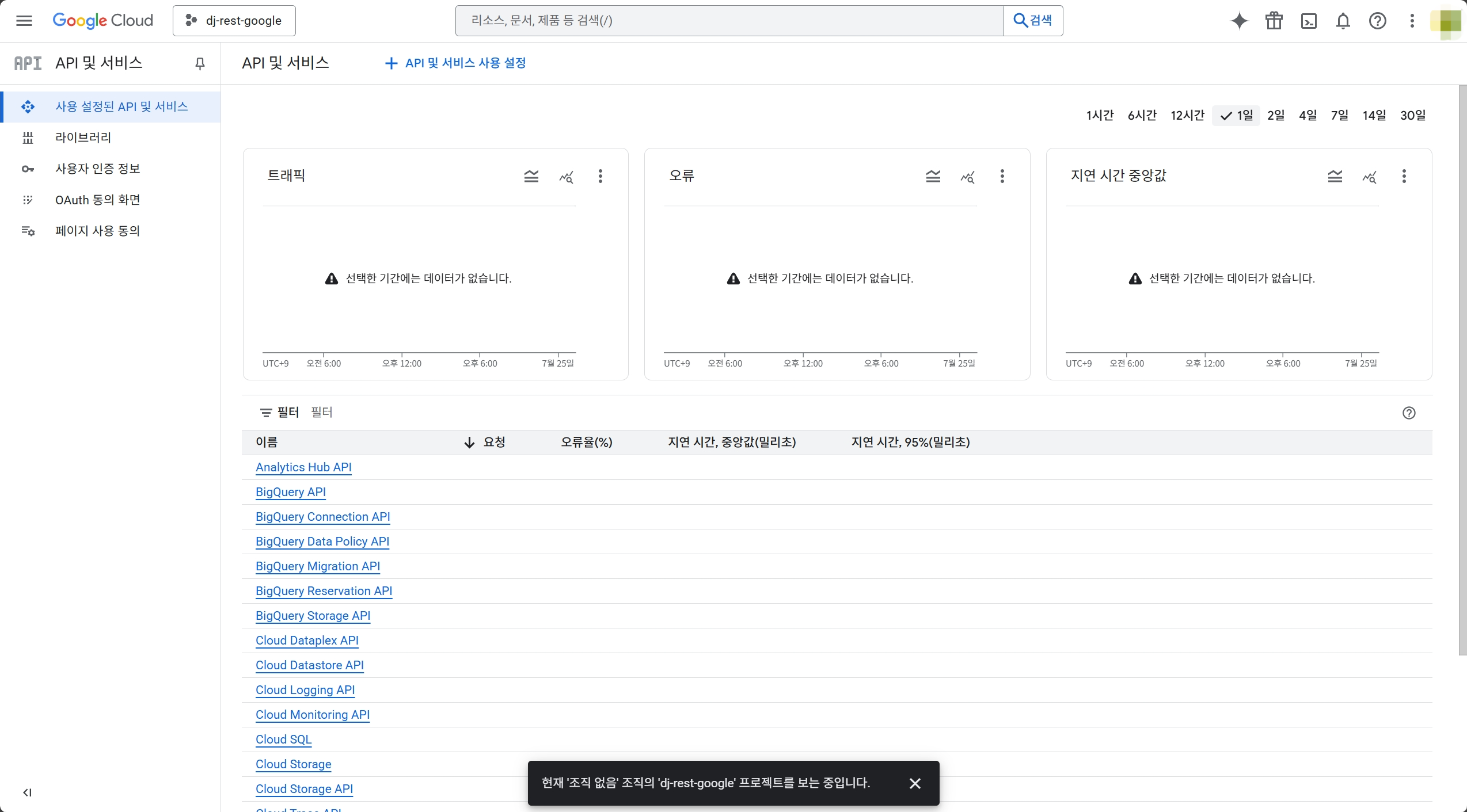 여기에서 잠깐 Django 프로젝트를 벗어나, 브라우저를 열고 구글 API 콘솔에 접속한다.