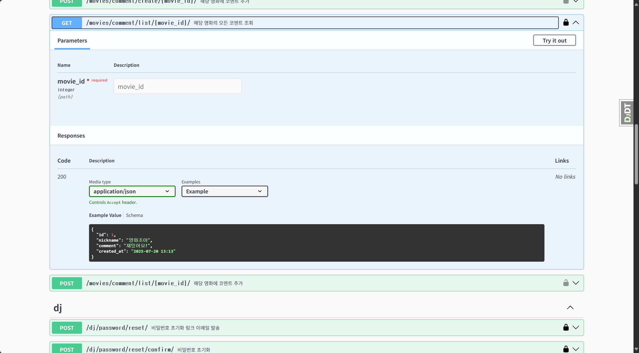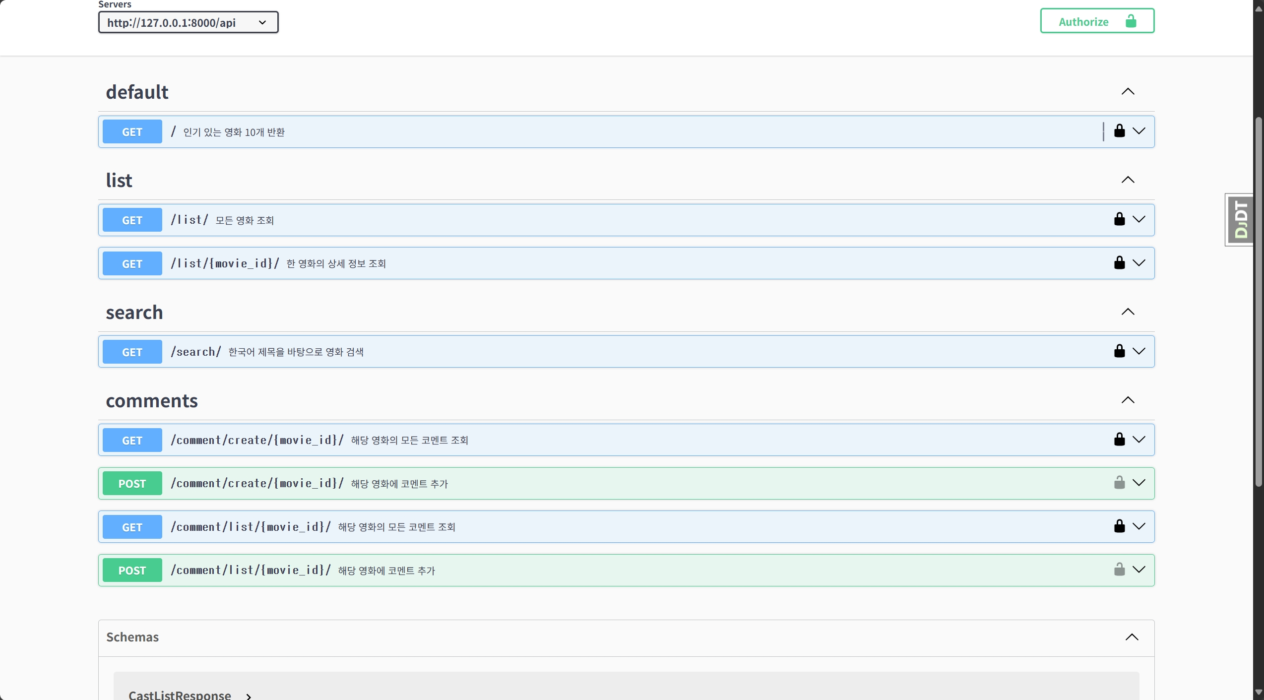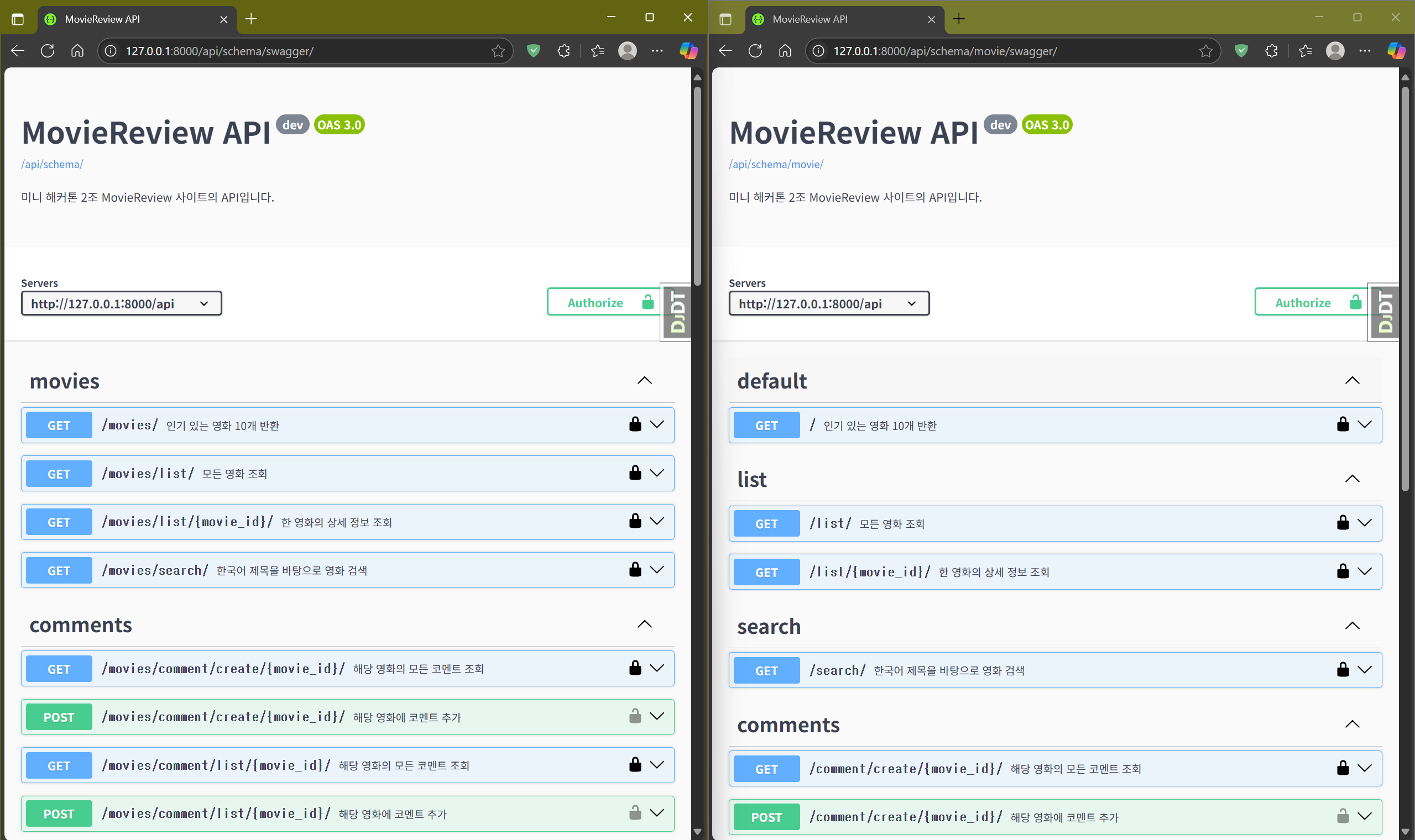 이렇게 설정하면, 스키마 문서는 movies.urls에 있는 엔드포인트들에 대해서만 API 정보를 보여준다.