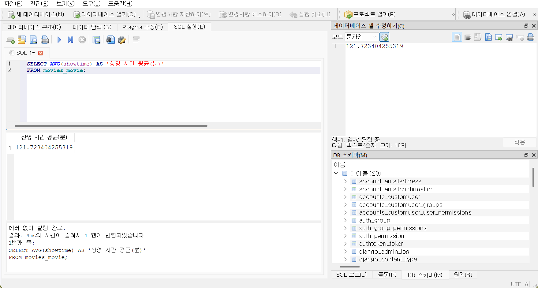 movies_movie 테이블의 데이터의 행의 총 개수를 반환한다.
