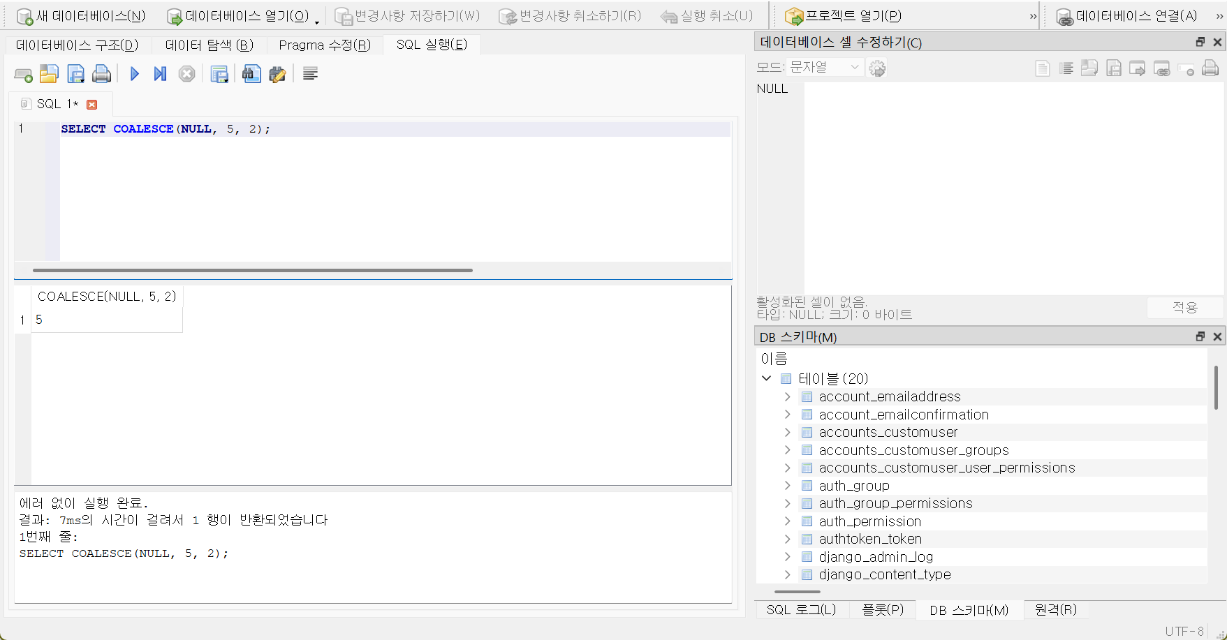 COALESCE는 주어진 인수들 중 첫번째로 NULL이 아닌 인수를 반환한다.