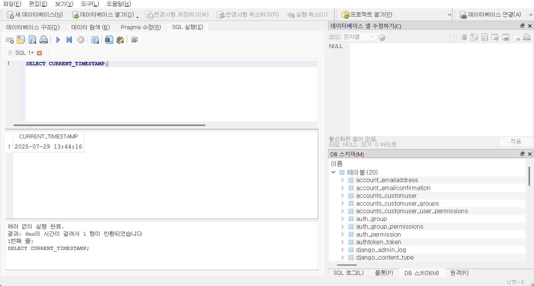 SQLite에서는 날짜 함수 부분이 들었던 강의와 내용이 많이 달라서, CURRENT_TIMESTAMP만 사용하고 넘어가려고 한다.